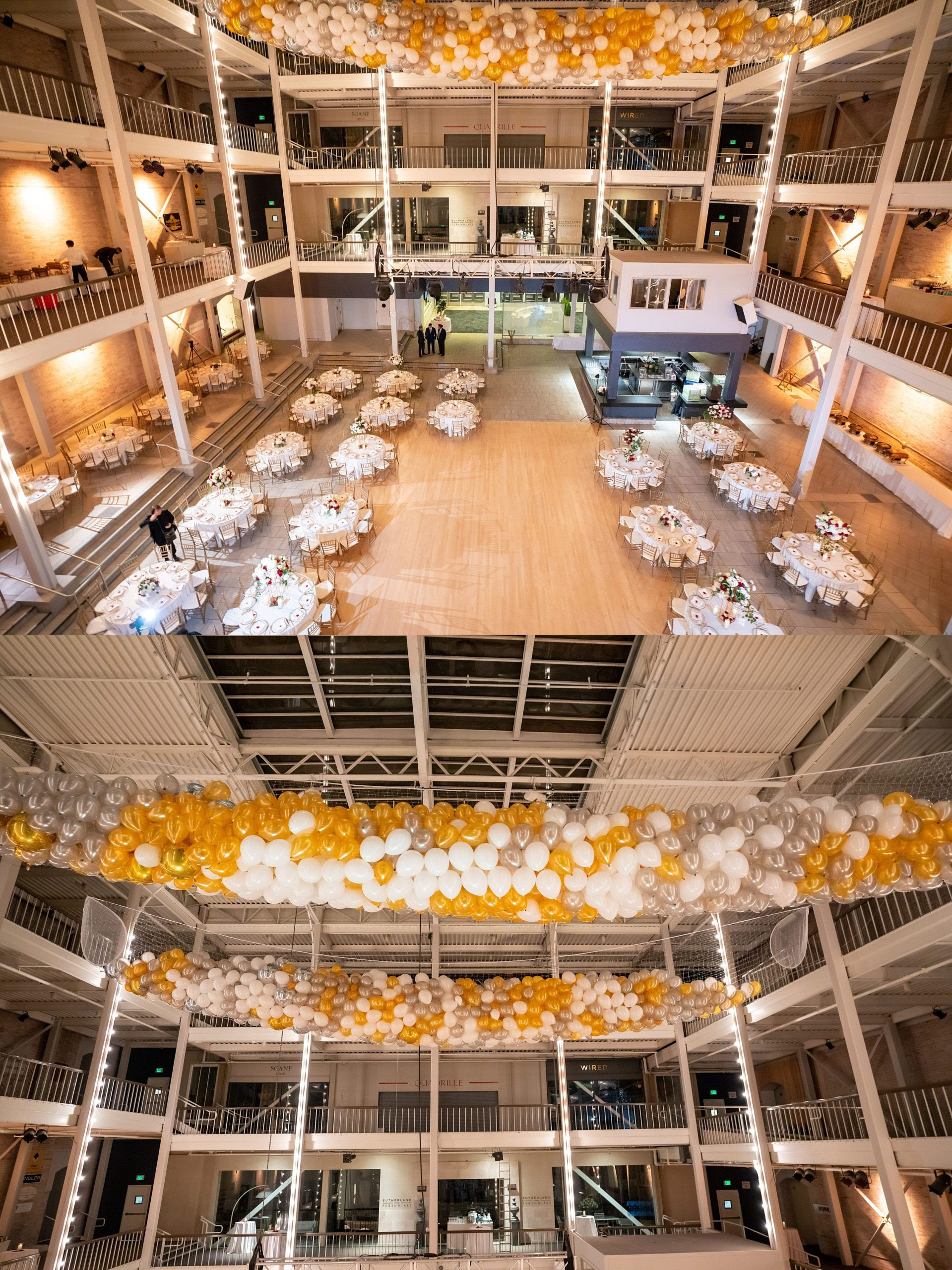 The Reception was at the SF Design Center, a huge place located in San Francisco’s hip design district, the Galleria is known as one of the Bay Area’s best places to celebrate. It has a spectacular four-story atrium. This space is perfect for a spectacular reception bash on NYE. The balloon drop was the highlight of the NYE reception!